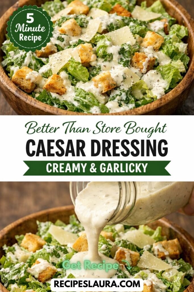 Authentic Caesar dressing uses raw egg yolks and anchovies. My version is easier, safer, and (I think) tastier. It uses