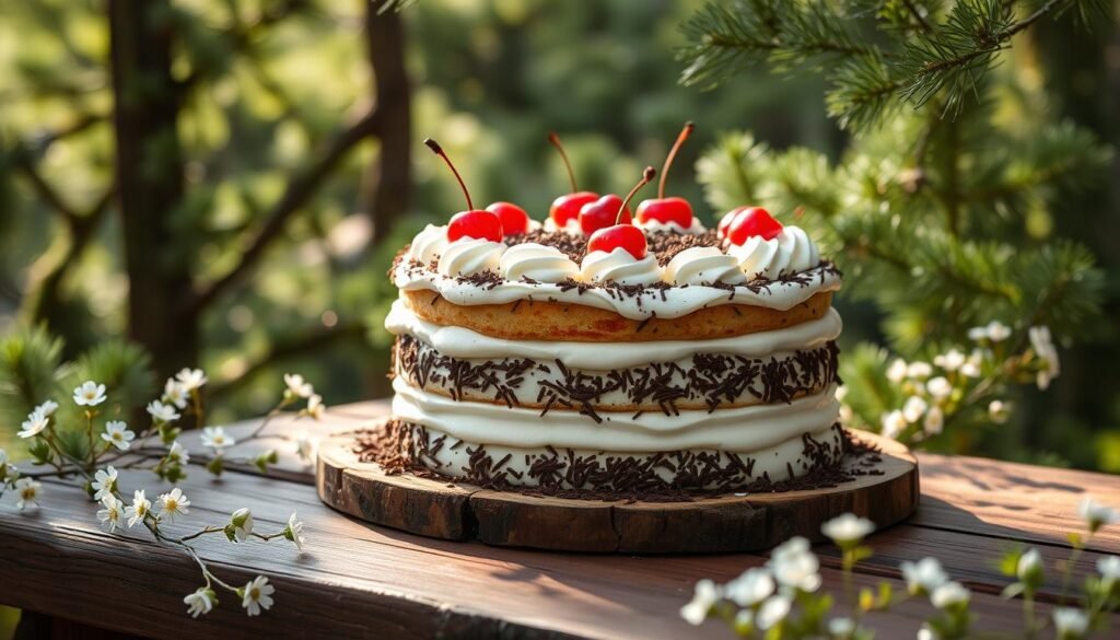 White Forest Cake is a symbol of cake traditions that have lasted through time. It has layers of fluffy cake, creamy frosting, and tart cherries. These flavors make it a hit at birthdays, weddings, and more.